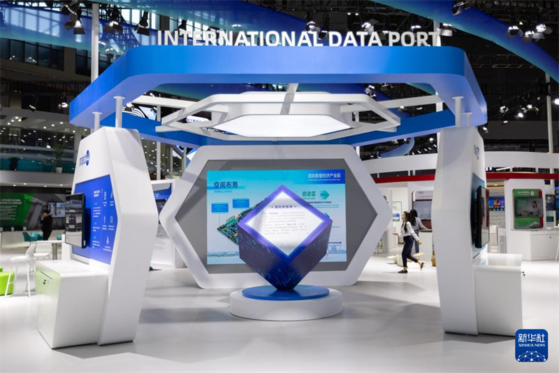 這是11月2日在技術(shù)裝備展區(qū)臨港展示區(qū)拍攝的國(guó)際數(shù)據(jù)經(jīng)濟(jì)產(chǎn)業(yè)園展臺(tái)。
