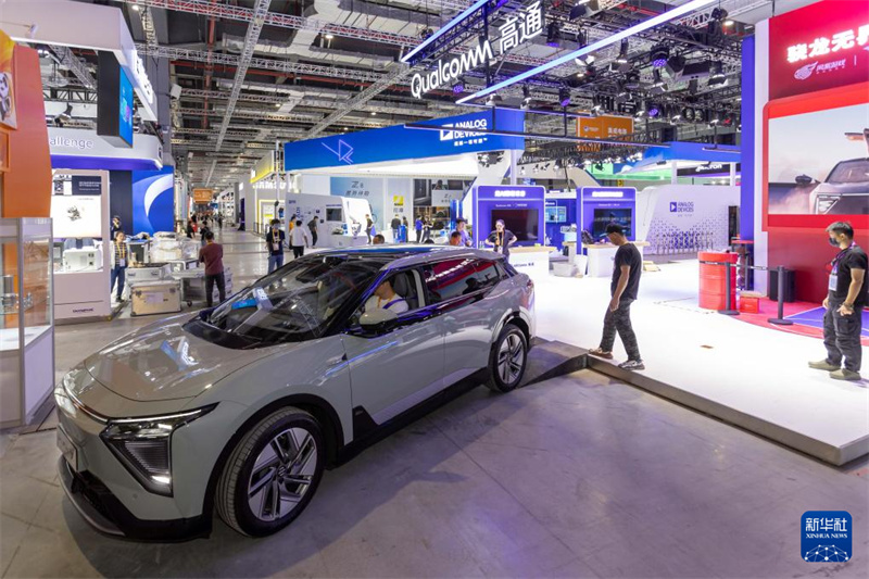 11月2日,一輛搭載高通芯片的智能電動(dòng)汽車(chē)準(zhǔn)備駛向高通展位。