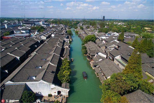 2016年10月11日,航拍浙江烏鎮(zhèn)。烏鎮(zhèn)是一個有著1300年建鎮(zhèn)史的江南水鄉(xiāng)古鎮(zhèn)。過去兩年,世界互聯(lián)網(wǎng)大會在這座千年古鎮(zhèn)舉行,來自全球的互聯(lián)網(wǎng)行業(yè)大咖及各國政要曾齊聚一堂