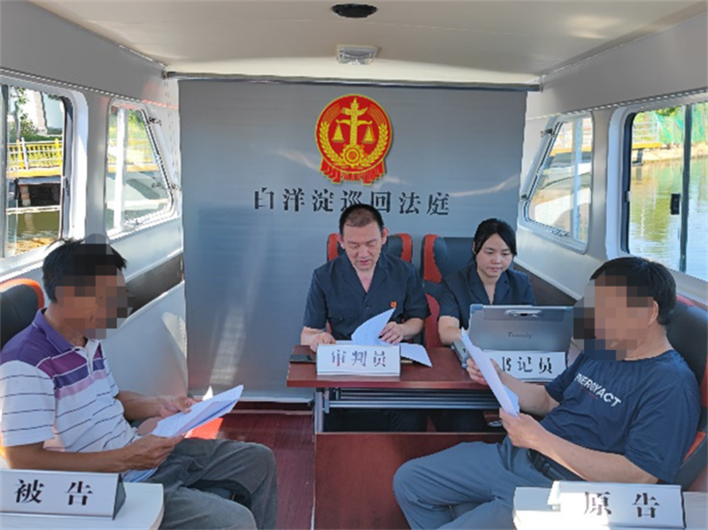 針對(duì)水區(qū)群眾訴訟不便及旅游糾紛突發(fā)性強(qiáng)、游客流動(dòng)性強(qiáng)、證據(jù)易失性強(qiáng)的特點(diǎn),白洋淀人民法庭建立了“巡回審判、電話接案、訴調(diào)對(duì)接、就地化解”等便民服務(wù)機(jī)制。依托在水區(qū)鄉(xiāng)鎮(zhèn)及白洋淀主要景區(qū)設(shè)立的七個(gè)巡回審判點(diǎn)和一艘巡回審判船,法庭干警可攜帶移動(dòng)便攜式數(shù)字法庭系統(tǒng),開展“七點(diǎn)一線”常態(tài)化巡回審判工作。