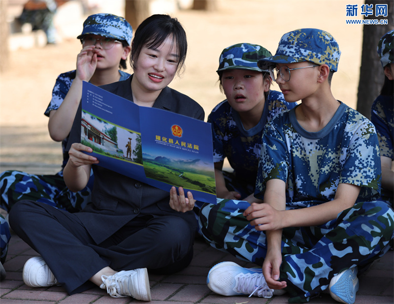 隆化縣人民法院城區(qū)人民法庭法官黃玲玲(左二)為學生講解法律知識。新華網(wǎng)發(fā)
