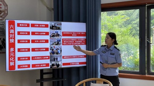 “傳統(tǒng)群眾工作手段主要是依靠人民調(diào)解、行政調(diào)解、司法調(diào)解三調(diào)聯(lián)動(dòng),而我們創(chuàng)立的‘貴和’工作法,推行警調(diào)對(duì)接、訪調(diào)對(duì)接、律調(diào)對(duì)接、訴調(diào)對(duì)接、民調(diào)對(duì)接、鄉(xiāng)賢調(diào)對(duì)接的多元化解‘六調(diào)對(duì)接’制度,輔警人員聘任為人民調(diào)解員?!眲⒄芟日f(shuō)。