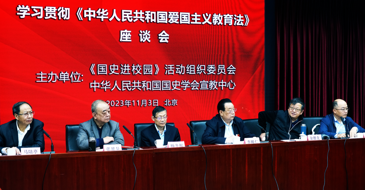 2023年10月24日第十四屆全國人大常委會第六次會議通過并頒布了《中華人民共和國愛國主義教育法》,決定自2024年1月1日起實施。為了深入學(xué)習(xí)貫徹習(xí)近平總書記致中華人民共和國國史學(xué)會成立30周年賀信精神,切實推動愛國主義教育和國史進(jìn)校園工作的深入開展,由國史進(jìn)校園(紅色經(jīng)典進(jìn)校園)組織委員會、中華人民共和國國史學(xué)會宣傳教育中心主辦的“學(xué)習(xí)貫徹《中華人民共和國愛國主義教育法》座談會”于11月3日在京召開。