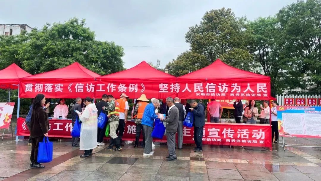 貴州省信訪局聯(lián)合貴陽(yáng)市信訪局及市、區(qū)15家單位于當(dāng)日上午在貴陽(yáng)市筑城廣場(chǎng)開(kāi)展《條例》施行一周年線下集中宣傳活動(dòng)。工作人員現(xiàn)場(chǎng)向群眾介紹、發(fā)放《條例》宣傳資料,并積極解答群眾問(wèn)題。