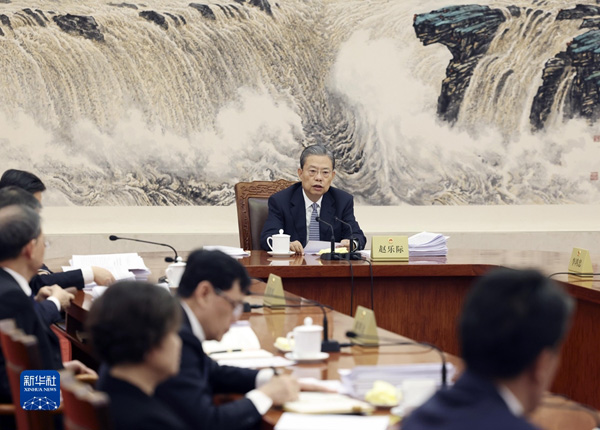12月18日上午,十四屆全國(guó)人大常委會(huì)第十六次委員長(zhǎng)會(huì)議在北京人民大會(huì)堂舉行。趙樂(lè)際委員長(zhǎng)主持會(huì)議。新華社記者 劉衛(wèi)兵 攝