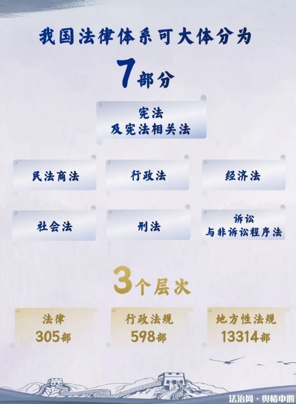 憲法具有高的法律效力,是法律法規(guī)和制度體系的源頭。我國(guó)的法律體系是由憲法統(tǒng)領(lǐng)下的各法律部分構(gòu)成。據(jù)國(guó)家法律法規(guī)數(shù)據(jù)庫(kù)查詢數(shù)據(jù),截至2022年10月30日,我國(guó)現(xiàn)行有效的法律有305部,行政法規(guī)598部,地方性法規(guī)13314部。在以憲法為總依據(jù)的前提下,我國(guó)法律數(shù)量不斷增加,立法機(jī)制也在不斷完善。