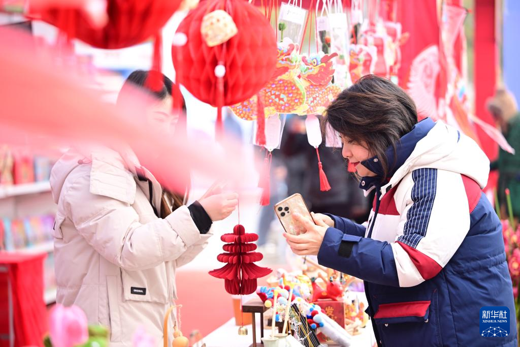 1月20日,人們?cè)诤笔∠尻柺蟹菂^(qū)國(guó)際商貿(mào)城挑選春節(jié)飾品。新華社發(fā)(謝勇攝)