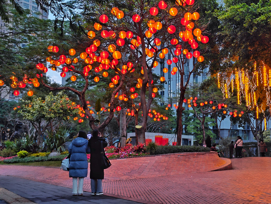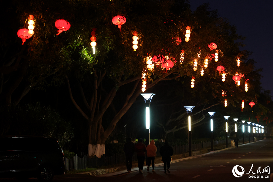 廈門(mén)思明美仁園內(nèi),大紅燈籠掛滿(mǎn)樹(shù)。胡康強(qiáng)攝