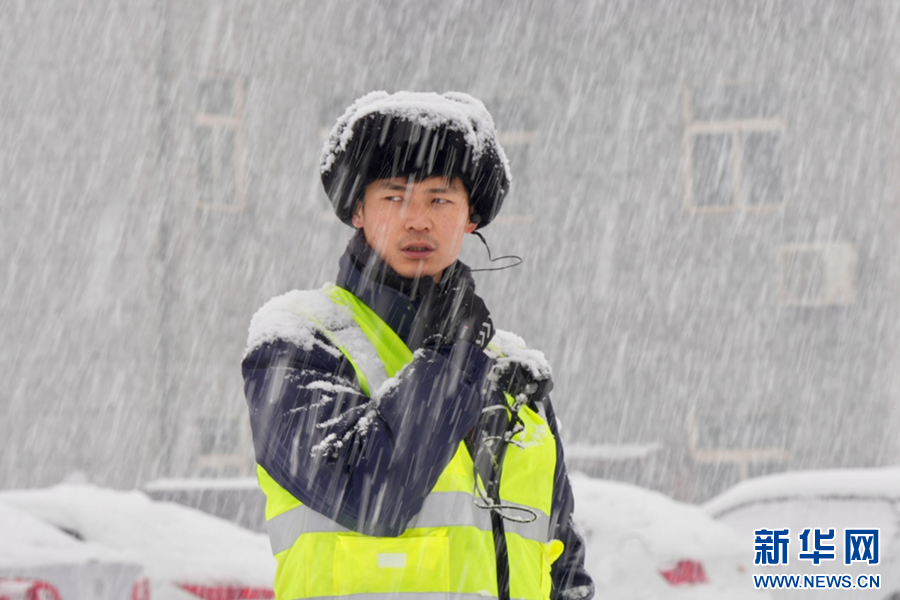 1月16日,在西安市臨潼區(qū)新豐鎮(zhèn)編組站,防護(hù)員用報(bào)話機(jī)聯(lián)系機(jī)車運(yùn)行情況,為工友們守護(hù)安全。新華網(wǎng)發(fā) 喬小虎 攝