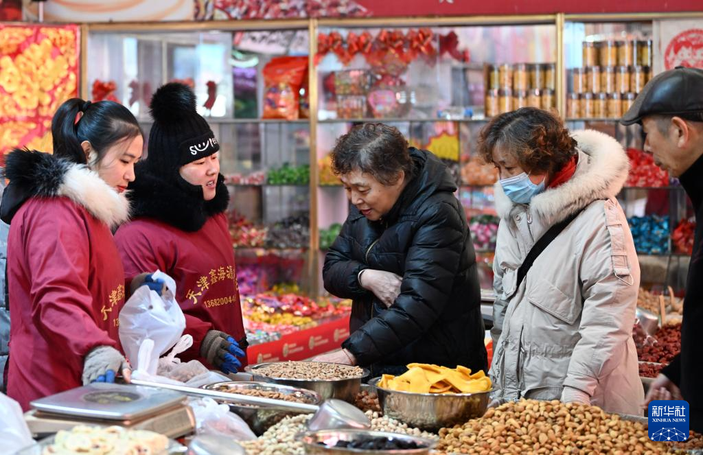 新春佳節(jié)臨近,在天津韓家墅海吉星農(nóng)產(chǎn)品批發(fā)市場(chǎng)舉辦的2024年天津市北辰區(qū)新春年貨節(jié)上,購(gòu)物的消費(fèi)者來(lái)來(lái)往往,熱鬧非凡。