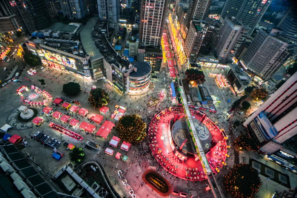 2024重慶火鍋年歡節(jié)吸引眾多消費者參與(無人機照片)。(尹詩語 攝)