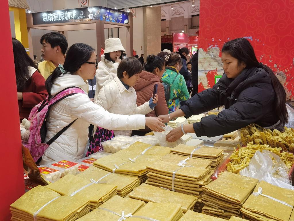 消費者在昆明新春購物博覽會現(xiàn)場選購年貨。新華社記者黃韜銘 攝