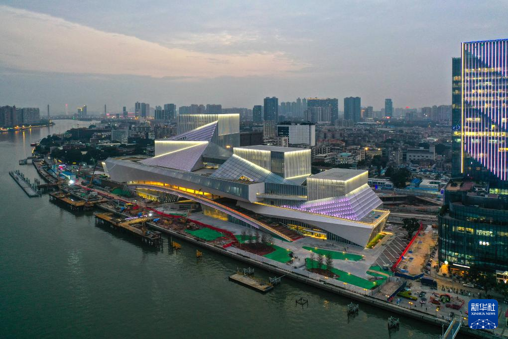 由中建三局承建的白鵝潭大灣區(qū)藝術(shù)中心進行亮燈測試(1月31日攝,無人機照片)。白鵝潭大灣區(qū)藝術(shù)中心位于廣州珠江白鵝潭,該項目集廣東美術(shù)館、廣東非物質(zhì)文化遺產(chǎn)展示中心、廣東文學館“三館合一”,目前已進入室內(nèi)裝修工程收尾階段。
