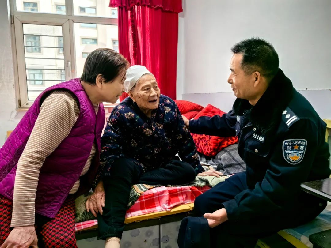 圖為民警王剛來到95歲的魏大娘家中進行春節(jié)慰問,并提供便民服務(wù)。