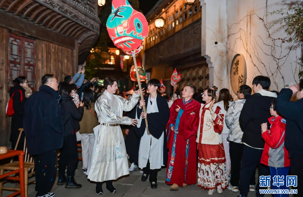 嬉魚燈會、街舞表演、萬物可敲、水上打鐵花……一系列兼具時尚與傳統(tǒng)的節(jié)目串聯(lián)起浙江省桐鄉(xiāng)市濮院時尚古鎮(zhèn)新年的起承轉合。2024年1月1日起,“時尚濮院·中國年”啟動,活動將持續(xù)至元宵節(jié)。