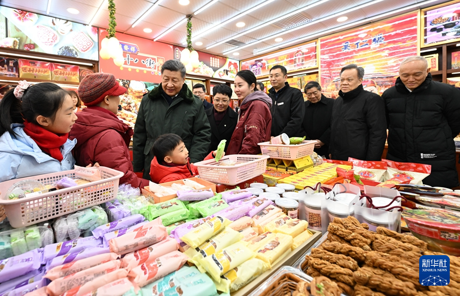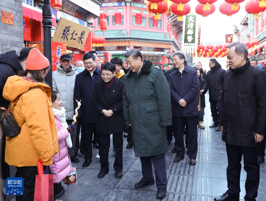 當(dāng)天下午,習(xí)近平來到天津古文化街。街道古色古香,習(xí)近平沿街步行,先后走進桂發(fā)祥十八街麻花、果仁張、泥人張、楊柳青年畫等特色店鋪,了解產(chǎn)品種類、銷售和傳統(tǒng)文化傳承發(fā)展等情況,同店鋪業(yè)主、員工和現(xiàn)場群眾互動交流。他說,各級黨委和政府要加強節(jié)日期間民生商品的產(chǎn)銷保供,確保數(shù)量充足、品類豐富、質(zhì)量可靠,讓廣大群眾放心消費、快樂過年。習(xí)近平指出,中國式現(xiàn)代化離不開優(yōu)秀傳統(tǒng)文化的繼承和弘揚,天津是一座很有特色和韻味的城市,要保護和利用好歷史文化街區(qū),使其在現(xiàn)代化大都市建設(shè)中綻放異彩。