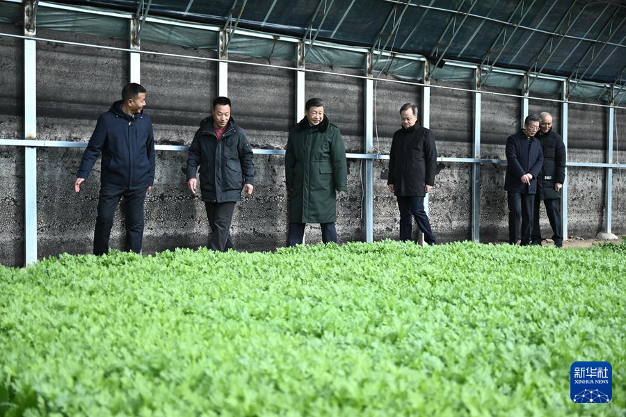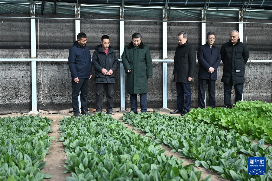 2月1日至2日,中共中央總書記、國家主席、中央軍委主席習(xí)近平來到天津,看望慰問基層干部群眾。這是1日上午,習(xí)近平在西青區(qū)辛口鎮(zhèn)第六埠村實地察看去年洪澇災(zāi)害后當(dāng)?shù)剞r(nóng)業(yè)生產(chǎn)恢復(fù)等情況時,走進大棚看蔬菜長勢。新華社記者 燕雁 攝