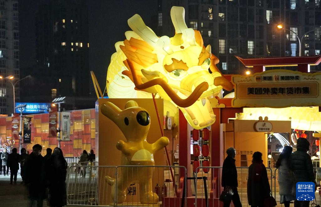 朝陽(yáng)區(qū)一家商場(chǎng)門口安裝的龍燈(2月2日攝)。