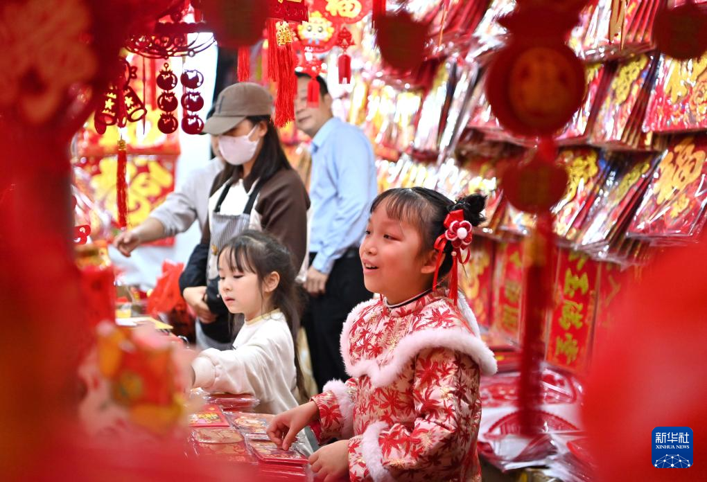 隨著春節(jié)臨近,廣西南寧迎來春節(jié)飾品銷售旺季,眾多市民采購春聯、窗花等,喜迎新春。