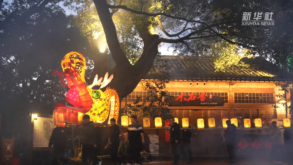 春節(jié)將至,江西省婺源篁嶺景區(qū),村民舞動板凳龍,展演民俗文化,迎接龍年的到來。