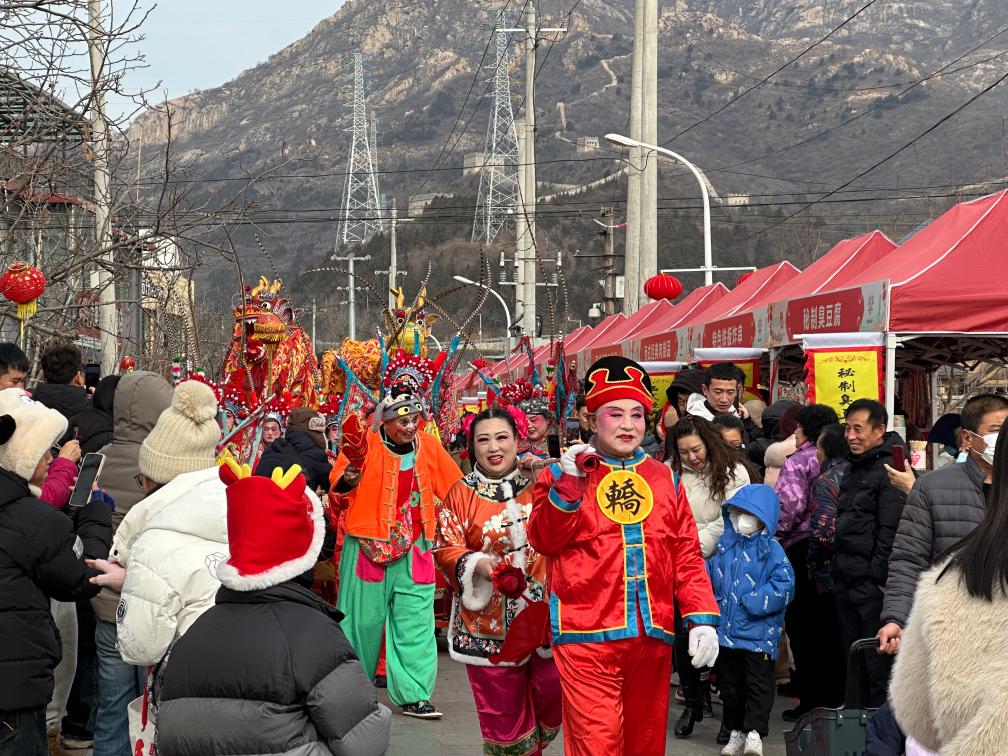 身著戲服的演員走街串巷傳遞新年祝福,對口支援合作地區(qū)特產(chǎn)大受歡迎,鄉(xiāng)村民宿、咖啡館內(nèi)人頭攢動……立春時節(jié),記者來到北京市懷柔區(qū)懷北鎮(zhèn)的河防口村,與村民們一起迎接當(dāng)?shù)靥厣顒印獞驯惫抨P(guān)迎春大集開幕。