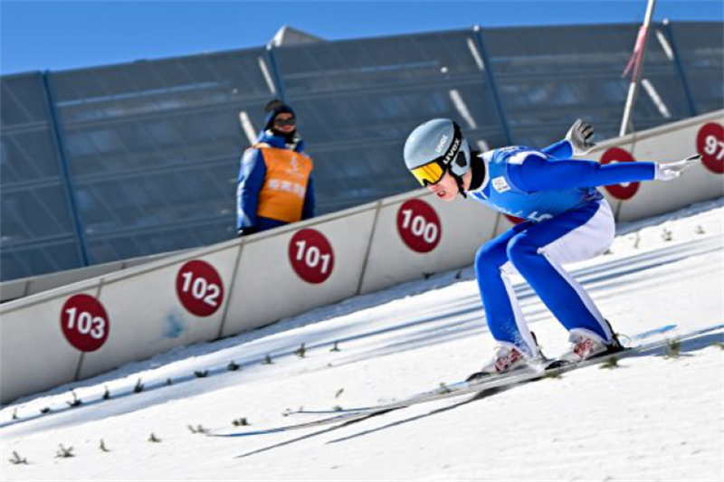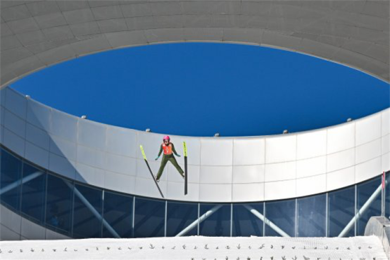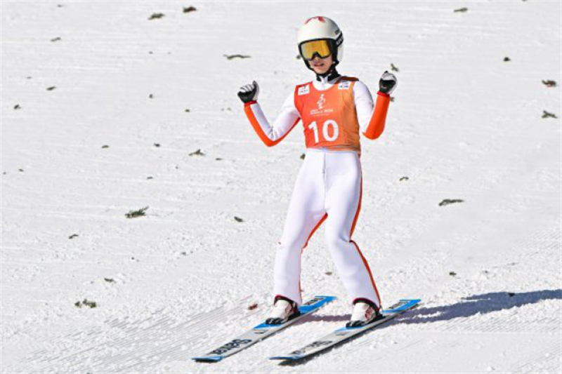 運動員從離地百米的高臺滑下,俯沖、加速,自跳臺末端躍向空中,在空中飛行數(shù)秒,呈“V”字形劃出優(yōu)美的拋物線后落地,這就是被稱為“勇敢者游戲”的跳臺滑雪。2月3日,“十四冬”張家口賽區(qū)的國家跳臺滑雪中心(雪如意)見證了兩場勇敢者的比拼,在“十四冬”跳臺滑雪最具觀賞性的大跳臺角逐中,吉林省代表隊的宋祺武和劉奇分獲公開組男女個人冠軍。(記者 馮雪玉 王曉博 賈奕村)