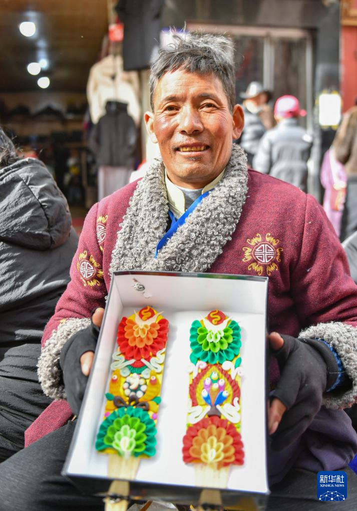 藏歷新年臨近,拉薩年貨市場上酥油花熱銷。酥油花以酥油為主要原料,手工精雕細捏而成,造型多樣,色彩豐富。