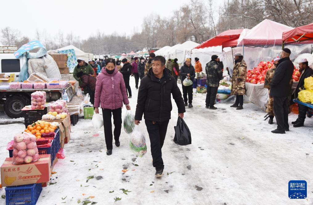 2月6日,人們?cè)诟拭C省臨夏州積石山縣石塬鎮(zhèn)肖紅坪村年俗集市選購年貨。