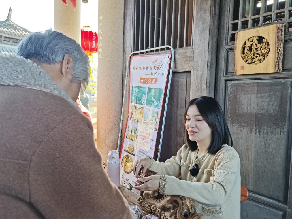 既有傳統(tǒng)的木雕蝦蟹簍,也有富有生活氣息的木雕頭簪、木雕“十二生肖”玩偶……潮州木雕非遺傳承人、“90后”陳嘉的展位上,木雕展品琳瑯滿目。她說,如今關(guān)注非遺的游客特別是年輕人越來越多,“我們現(xiàn)在對(duì)傳承非遺越來越有信心,歡迎大家到古城來過大年!”
