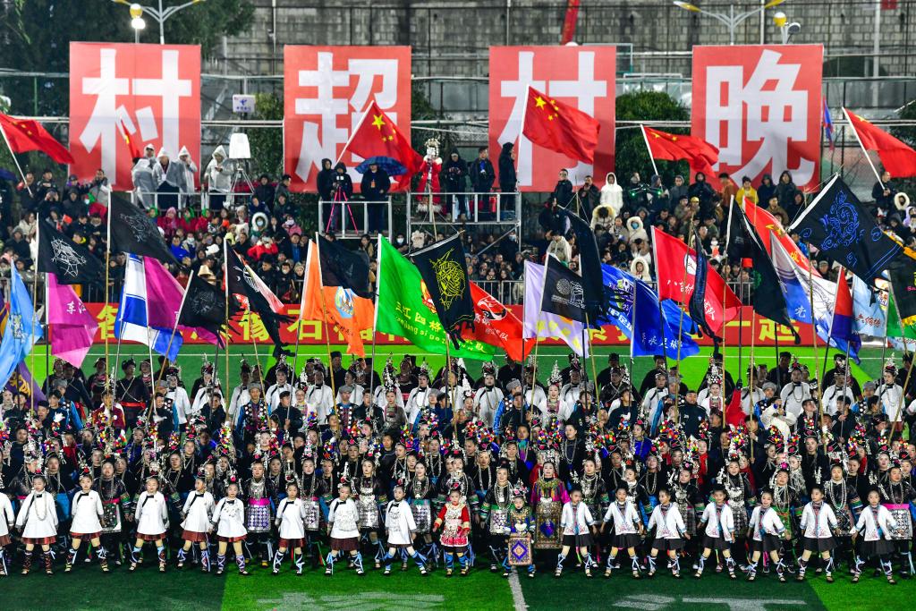 2024全國“村晚”示范展示活動暨貴州“村超村晚”2月3日在貴州省黔東南苗族侗族自治州榕江縣拉開帷幕。新華社記者 楊文斌 攝