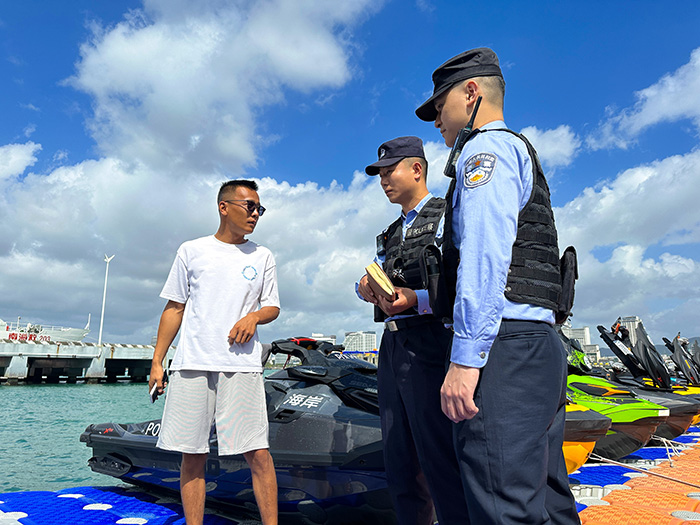 圖為三亞港海岸派出所聯(lián)合海事局和執(zhí)法局對(duì)海上娛樂項(xiàng)目開展聯(lián)合檢查