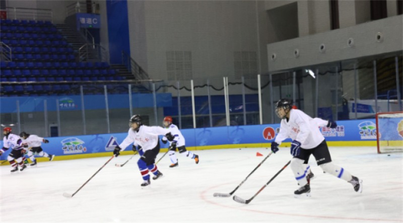 內蒙古冰雪運動學校女子冰球隊隊員正在內蒙古自治區(qū)冰上運動訓練中心進行備戰(zhàn)訓練。李新軍 攝