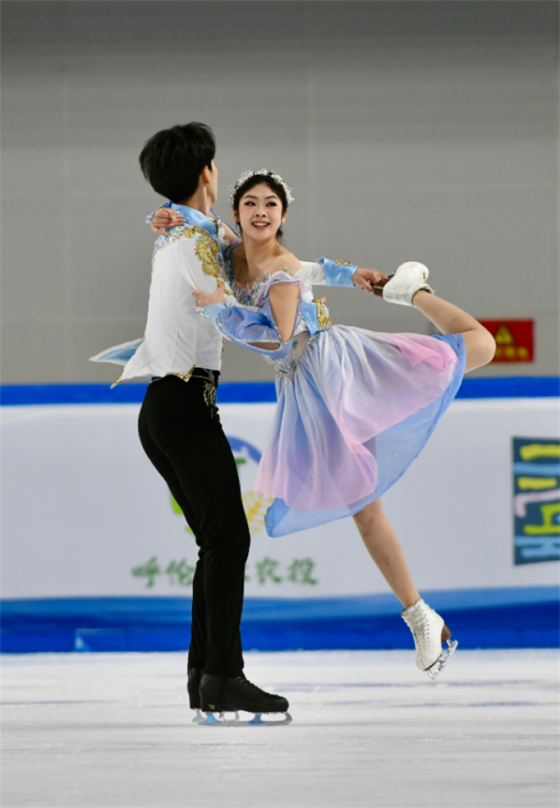 “十四冬”花樣滑冰青年組冰上舞蹈比賽現(xiàn)場。孟和朝魯 攝