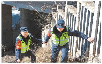 中午過后氣溫升高,地上的雪融化后,路上滿是泥濘,一段原本只需兩個(gè)小時(shí)的巡查區(qū)段,最后用了4個(gè)小時(shí)才走完。一路下來,民警的身上、鞋子上和手上滿是泥土。