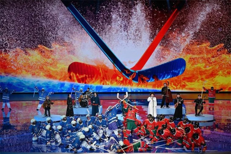 文體展演的主題為“燃情冰雪?筑夢北疆”,包括序篇《共同的家園》,主篇章《山河共錦繡》《冰雪共相約》《攜手共奮進(jìn)》,尾聲《共同的未來》。展演將中國風(fēng)范、民族特色、北疆韻味、運(yùn)動活力通過科技手段創(chuàng)意呈現(xiàn),展現(xiàn)了草原文化、冰雪文化和民族文化的多彩魅力。