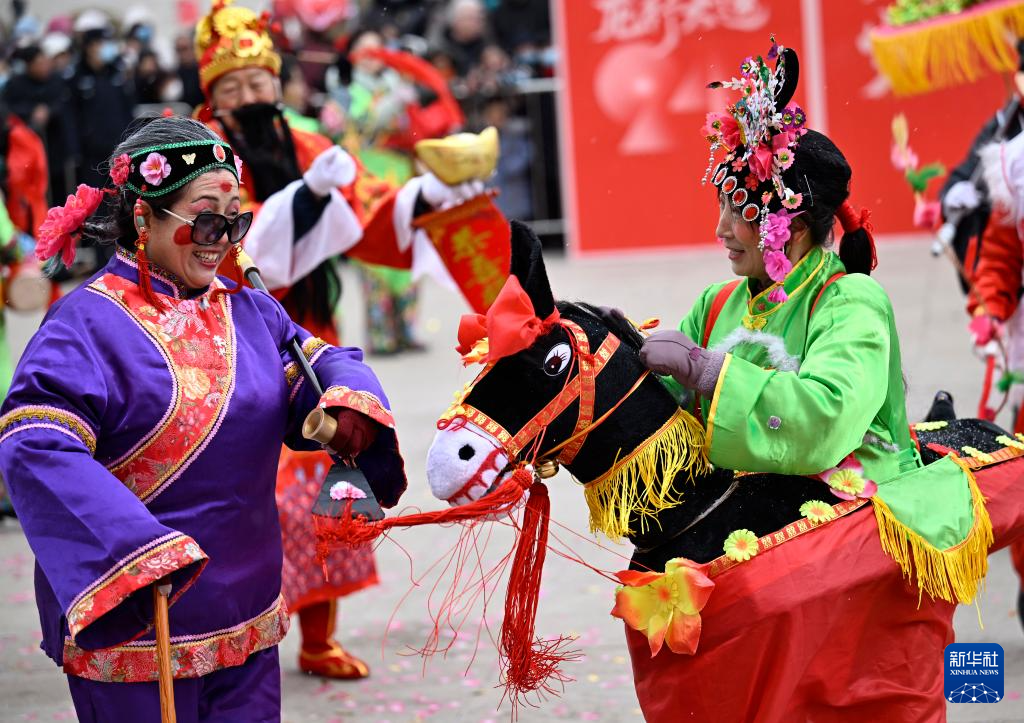 當(dāng)日,寧夏銀川市社火聯(lián)賽首場比賽在興慶區(qū)光明廣場舉行。來自銀川市興慶區(qū)、賀蘭縣的多支社火隊為市民獻上秧歌、舞龍、舞獅等傳統(tǒng)社火項目,喜迎元宵佳節(jié)的到來。