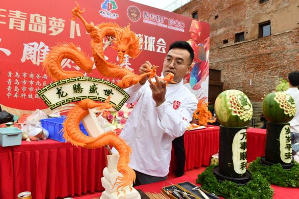 立春吃一寶,龍年無煩惱。中國北方素有正月初九“咬春”的習俗,“咬春”即吃蘿卜,寓意長長久久,平平安安。2月18日下午,蘿卜·元宵·糖球會保留節(jié)目—蘿卜雕刻大賽在易州路廣場如期舉辦。