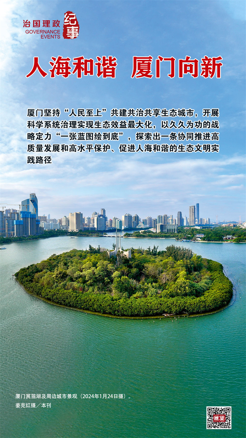 從習(xí)近平同志親自謀劃、親自部署、親自推動(dòng)的筼筜湖綜合治理出發(fā),廈門堅(jiān)持“人民至上”共建共治共享生態(tài)城市,開展科學(xué)系統(tǒng)治理實(shí)現(xiàn)生態(tài)效益最大化,以久久為功的戰(zhàn)略定力“一張藍(lán)圖繪到底”,探索出一條協(xié)同推進(jìn)高質(zhì)量發(fā)展和高水平保護(hù)、促進(jìn)人海和諧的生態(tài)文明實(shí)踐路徑。