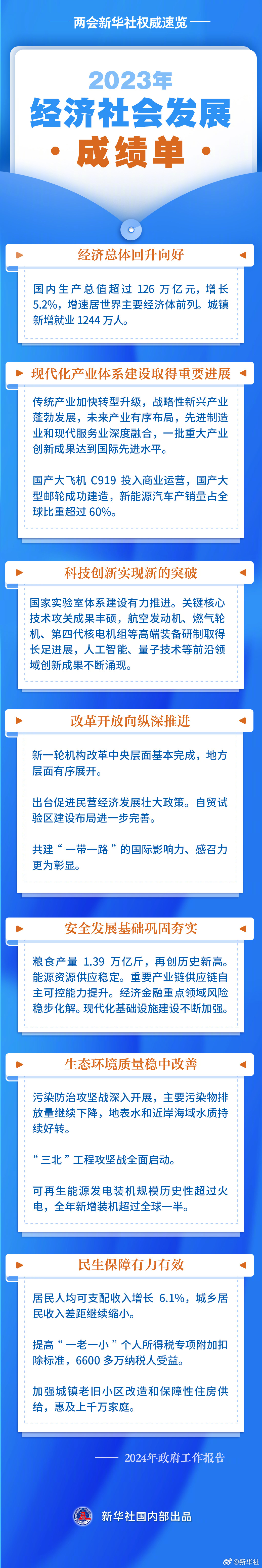 兩會(huì)新華社權(quán)威速覽丨2023年經(jīng)濟(jì)社會(huì)發(fā)展成績單