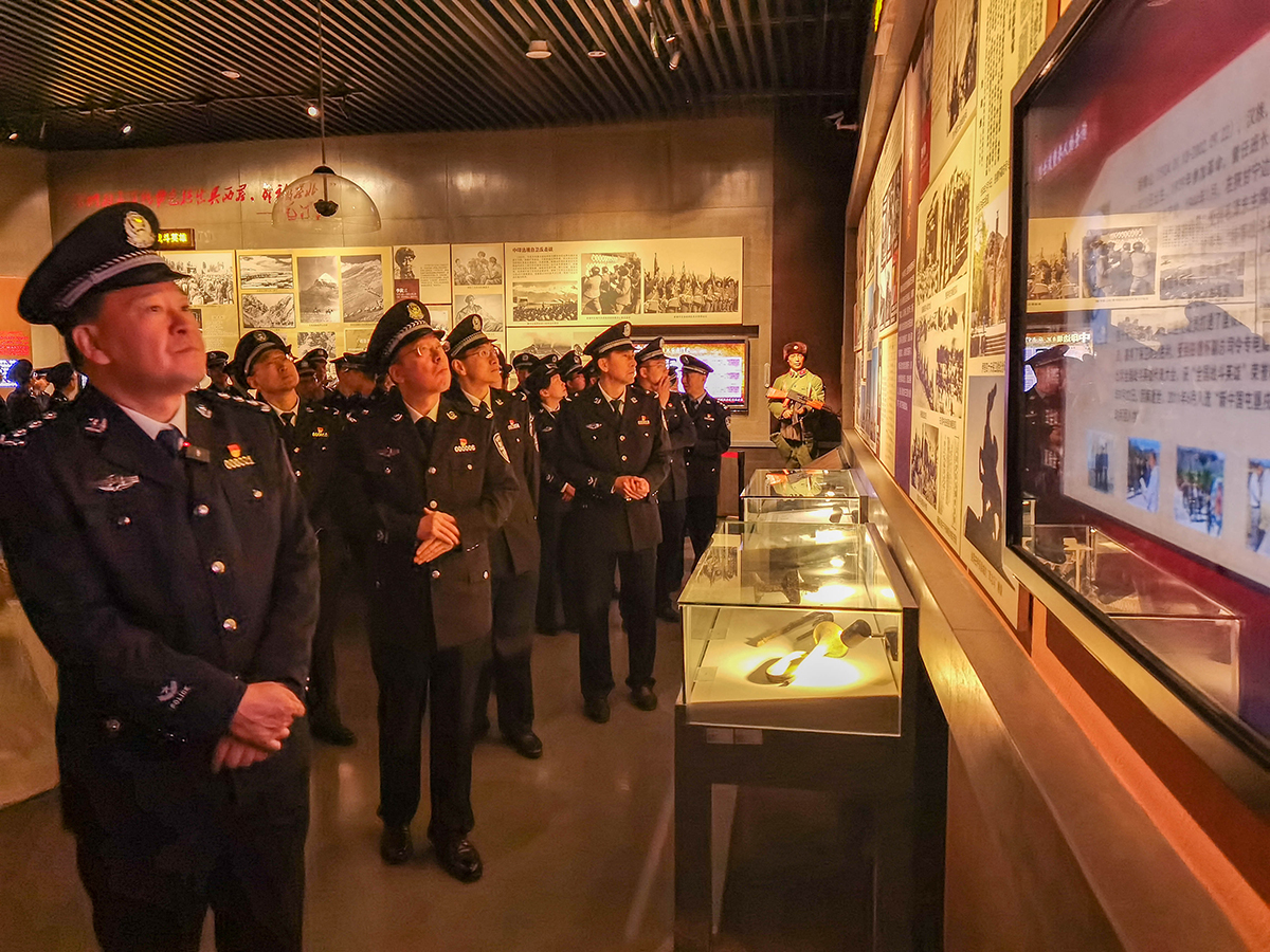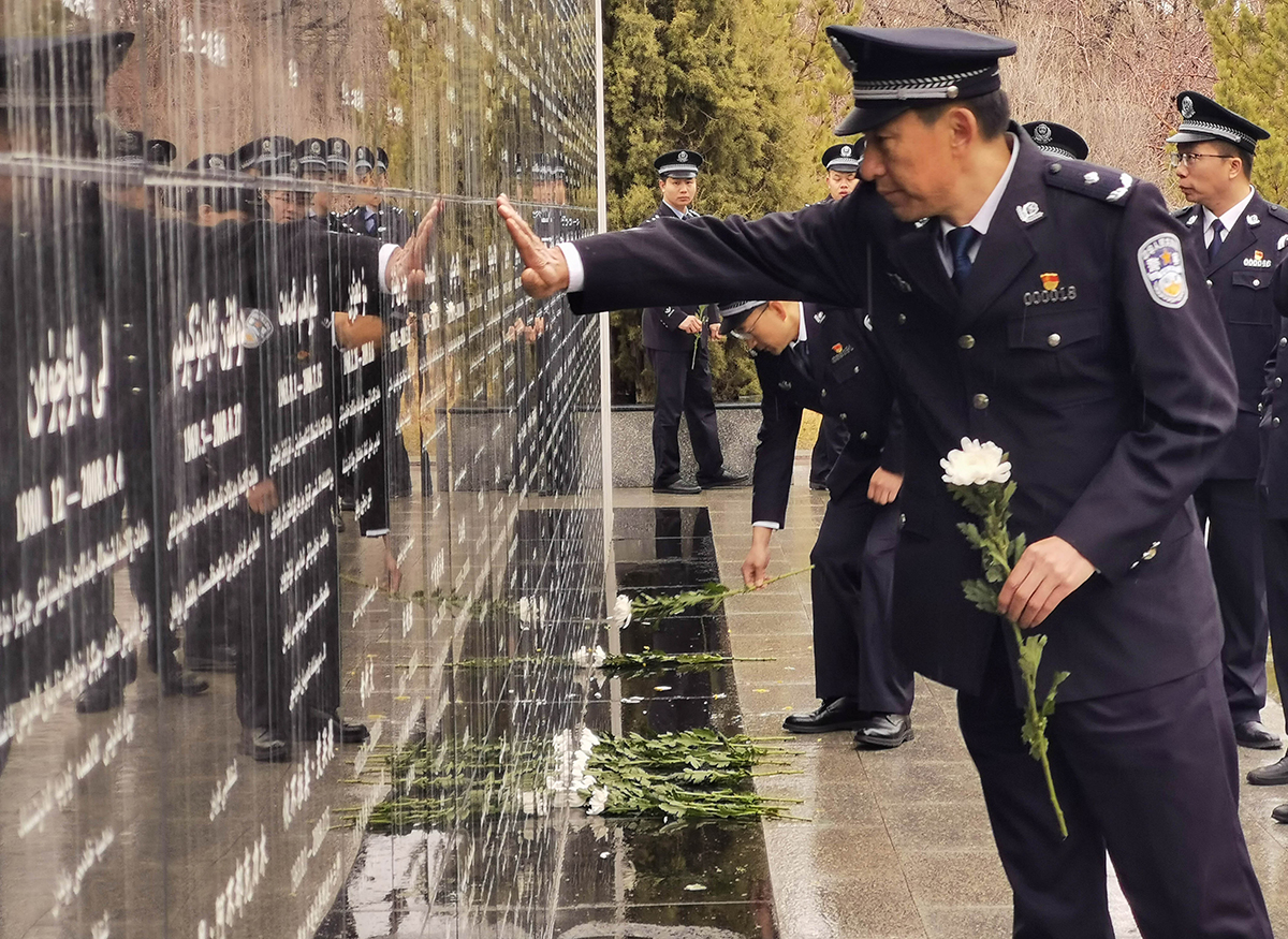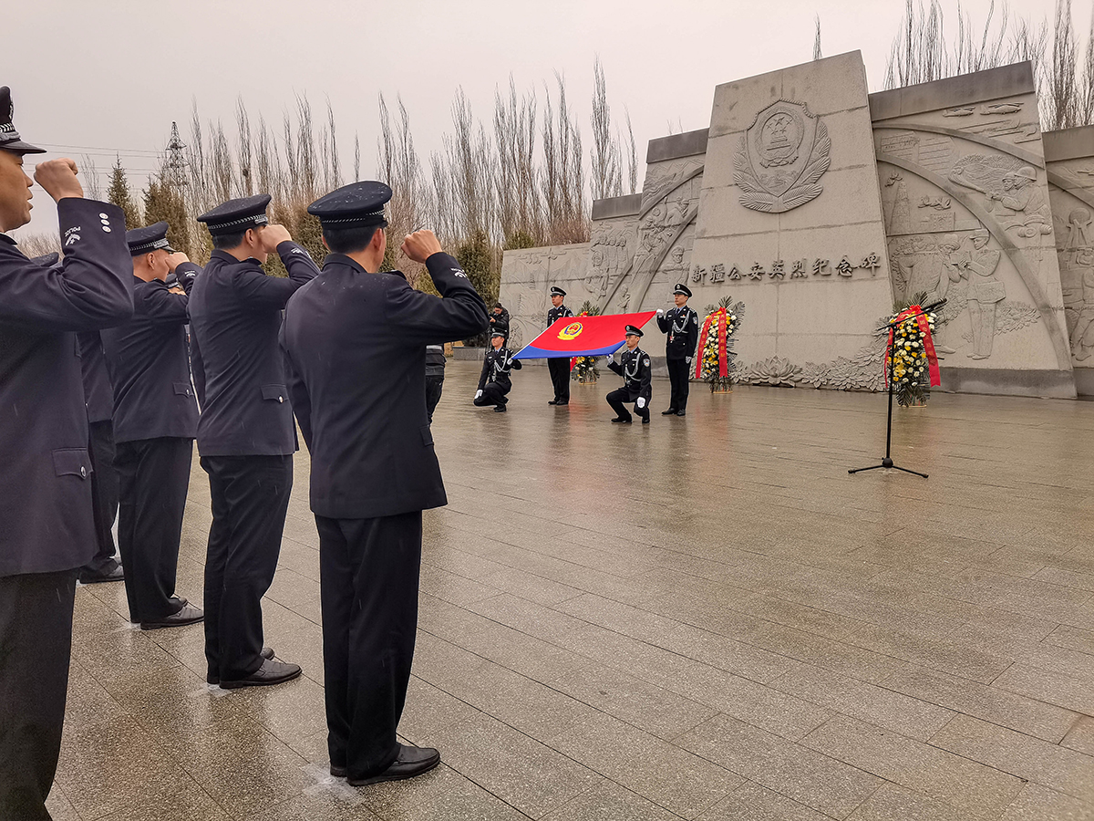 4月4日清明節(jié),新疆生產(chǎn)建設(shè)兵團公安局組織民警來到烏魯木齊市烈士陵園,開展“致敬公安英烈 激發(fā)奮進(jìn)力量”主題黨日活動。參加活動的民輔警警容嚴(yán)整,面向新疆公安英烈墻默哀、鞠躬、敬獻(xiàn)鮮花,表達(dá)對烈士的敬意,緬懷英烈功績、繼承英烈遺志,追思他們忠誠于黨、不畏犧牲、無私奉獻(xiàn)的崇高革命精神,并在公安英烈墻前重溫入警誓詞。民警們還參觀了烈士事跡陳列館,追思烈士的英勇事跡。
