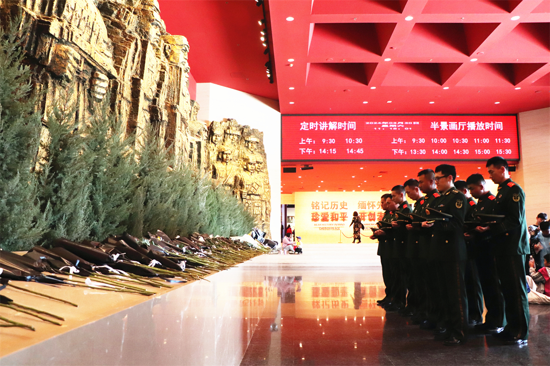 在抗日戰(zhàn)爭(zhēng)紀(jì)念館紀(jì)念哀思抗日先烈。劉文龍 攝