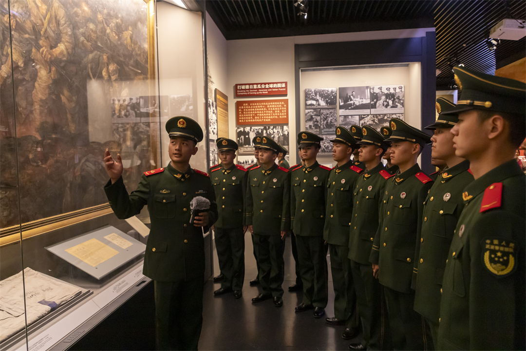 “在迎擊敵人的最后一次反撲中,劉老莊八十二烈士與敵人展開白刃戰(zhàn)……”在中國人民抗日戰(zhàn)爭紀(jì)念館中,武警北京總隊某支隊“紅肩章”理論宣講隊成員肖志尹正在向戰(zhàn)友們講述著他整理的英雄先烈的故事,將自身感受分享給大家,點燃官兵矢志奮斗強(qiáng)軍的熱情。