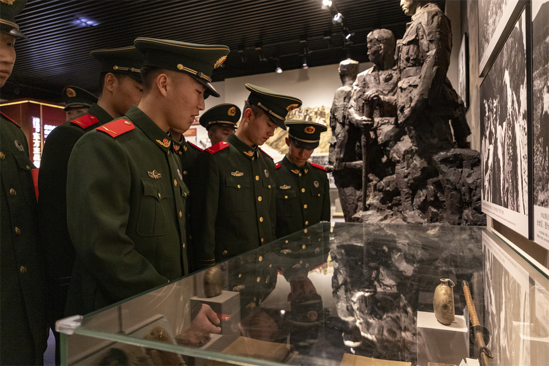 官兵們走進(jìn)紀(jì)念館內(nèi),沿著歷史的年輪,循著先輩的足跡,不時在一件件歷史文物前駐足沉思?!拔視斡洑v史,追隨先烈,奮勇前行……”“我們是新時代接力者”……官兵們在留言簿上寫下寄語。