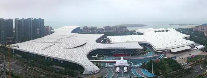 這是4月11日拍攝的第四屆中國國際消費品博覽會主會場海南國際會展中心(無人機(jī)拼版照片)。新華社記者 郭程攝