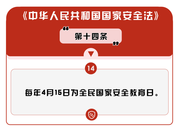 2015年7月1日,全國人大常委會通過的《中華人民共和國國家安全法》第十四條規(guī)定,每年4月15日為全民國家安全教育日。