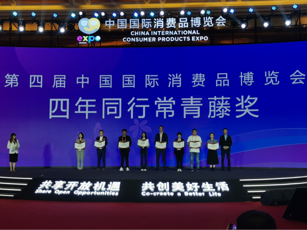截至今年,中國國際消費(fèi)品博覽會(huì)(以下簡稱“消博會(huì)”)已成功舉辦四屆,給眾多國內(nèi)外展商留下深刻印象,越來越多的新朋友成為消博老友,持續(xù)多年參展,共享開放機(jī)遇。4月18日,第四屆消博會(huì)為中國銀行、博柏利Burberry、復(fù)星集團(tuán)、愛丁頓洋酒、愛爾蘭國家館、傲勝、愛樂活跨境免稅健康商城等42家連續(xù)參展的贊助商、參展商代表頒發(fā)“四年同行常青藤獎(jiǎng)”。