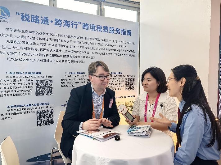 為了更好地服務(wù)來自世界各地的展商及嘉賓,海南稅務(wù)部門成立了由3名外語人才和2名國際稅收專家組成的“稅路通·跨海行”跨境稅費(fèi)服務(wù)團(tuán)隊(duì),在提供中英雙語咨詢服務(wù)的同時(shí),還現(xiàn)場舉辦跨境稅費(fèi)服務(wù)及政策講解直播,詳細(xì)講解針對(duì)跨境投資者的稅收優(yōu)惠政策。