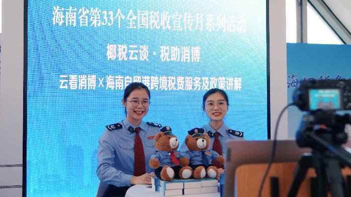 海南省稅務(wù)局舉辦“椰稅云談·稅助消博”政策解讀直播活動(dòng),稅務(wù)干部通過“海南稅務(wù)”抖音直播間在線講解海南自貿(mào)港跨境稅費(fèi)服務(wù)及政策。海南省稅務(wù)局供圖