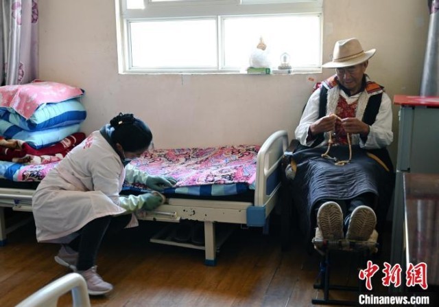 剛到敬老院工作時(shí),格西王姆也經(jīng)歷過(guò)一段磨合期。由于沒(méi)有接受過(guò)護(hù)理方面的專業(yè)訓(xùn)練,格西王姆給老年人排便、洗澡要克服很大的心理障礙。當(dāng)時(shí),九寨溝景區(qū)火熱,游客很多,身邊的同齡人大多去九寨溝景區(qū)附近跳舞賺錢,這個(gè)念頭一度纏繞格西王姆。