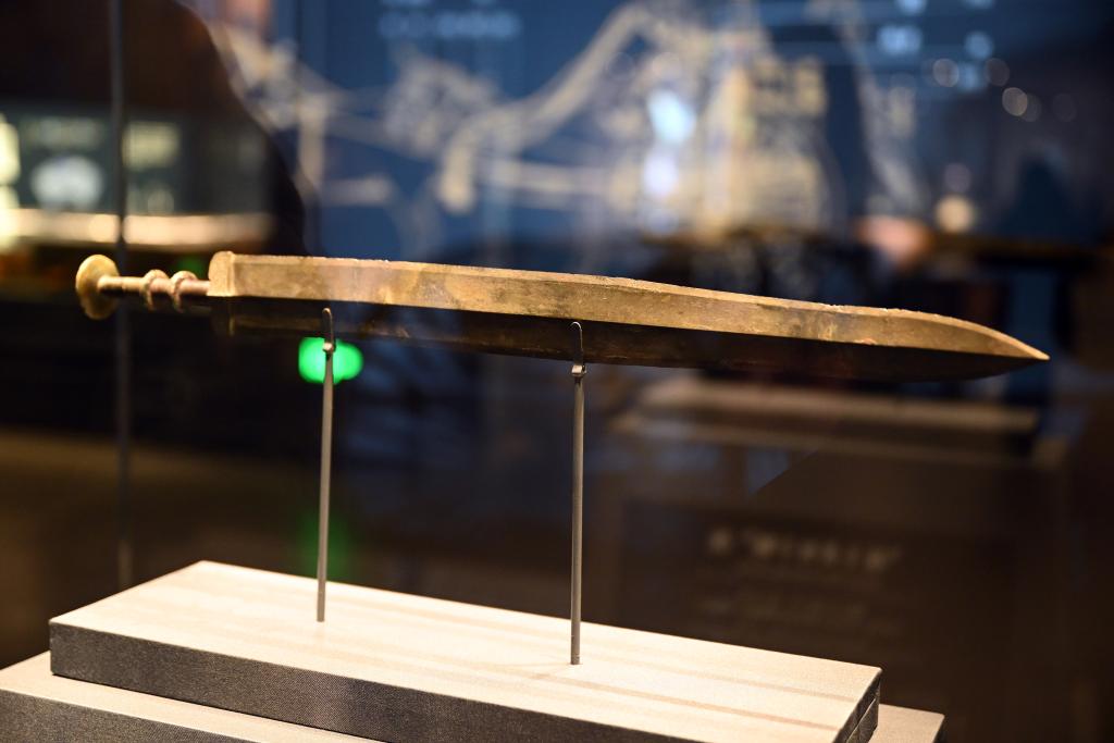 安徽楚文化博物館展出的越王者旨于賜劍。新華社記者 周牧 攝